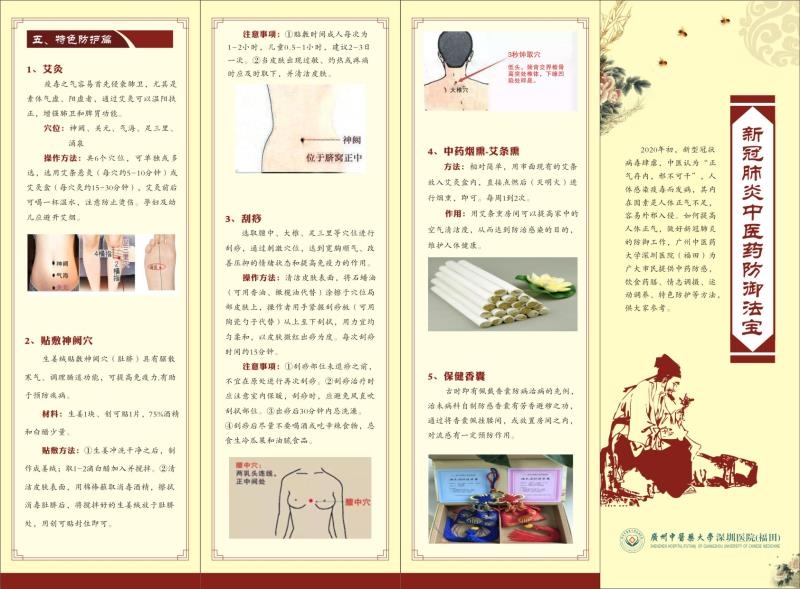 據(jù)張?zhí)旆?/span>介紹,中醫(yī)認(rèn)為“正氣存內(nèi),邪不可干”,人體感染疫毒而發(fā)病,其內(nèi)在因素是人體正氣不足,容易外邪入侵。如何提高人體正氣,做好新冠肺炎的防御工作,廣中醫(yī)深圳醫(yī)院制作了《新冠肺炎中醫(yī)藥防御法寶》將在近日印發(fā),派送到居民手中,指導(dǎo)市民運用中醫(yī)藥特色方法,從情志調(diào)理、起居調(diào)控、飲食調(diào)養(yǎng)、傳統(tǒng)健身、中藥防感、特色防護等方面助力防控工作,傳授八段錦、經(jīng)絡(luò)拍打操、食療藥膳、中醫(yī)按摩手法、穴位艾炙等養(yǎng)生保健方法,增強體質(zhì),提高防控效果。