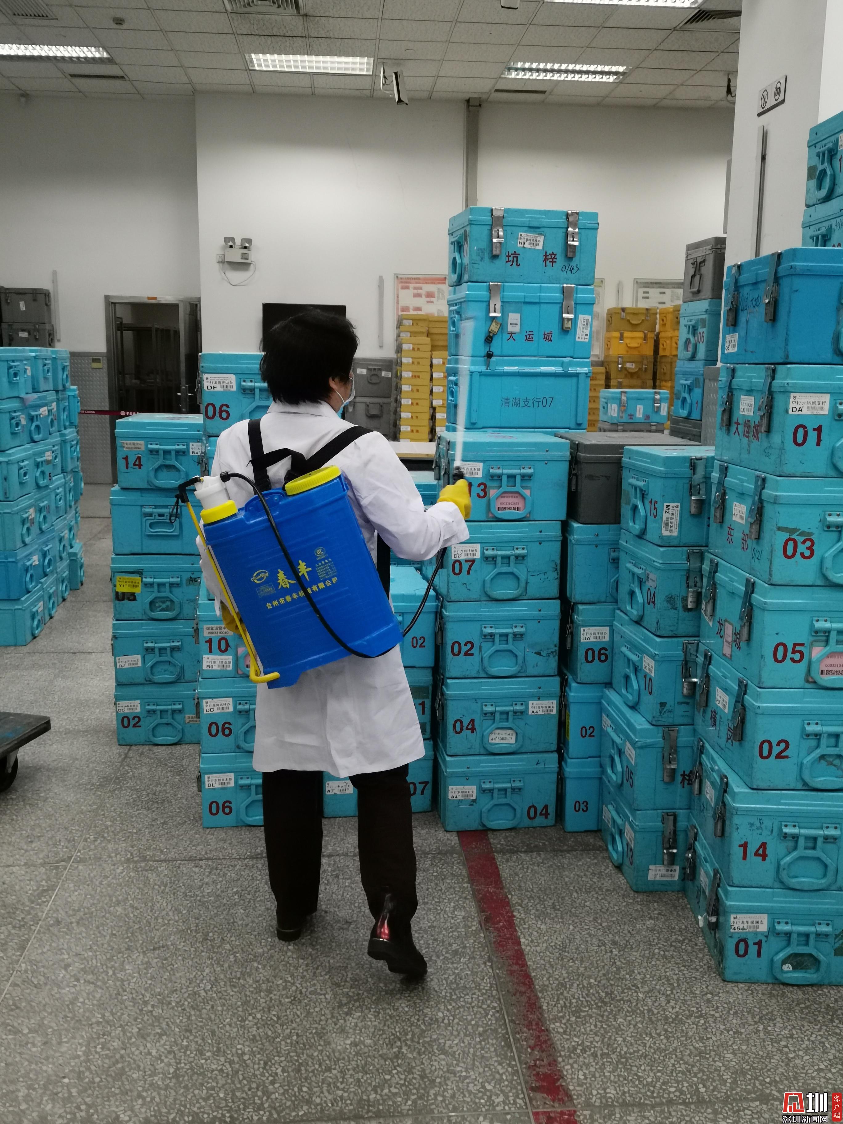 中國銀行深圳市分行對現(xiàn)金尾箱進行消毒