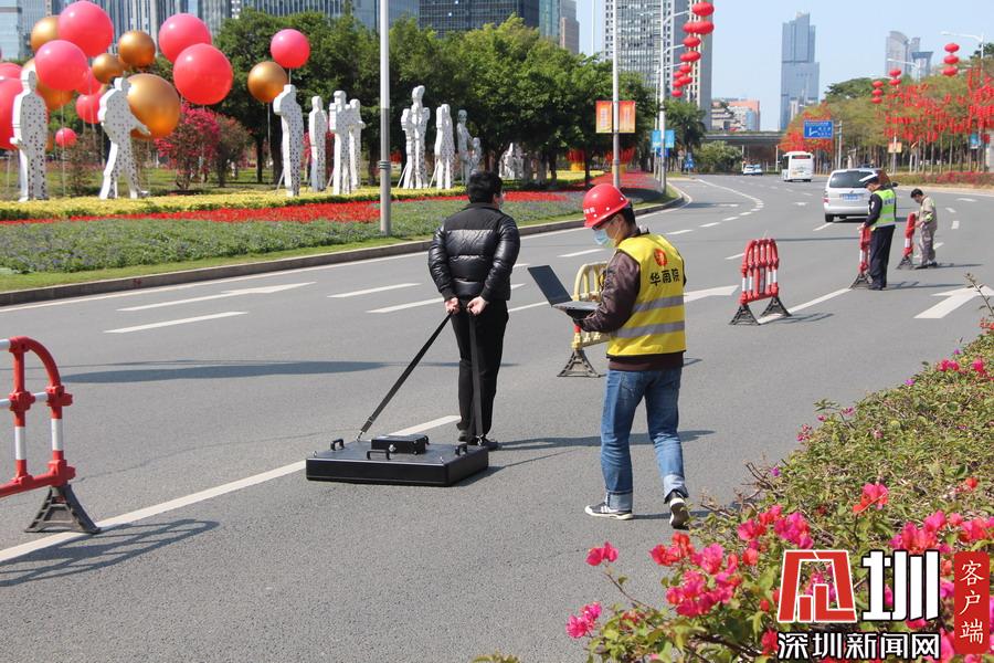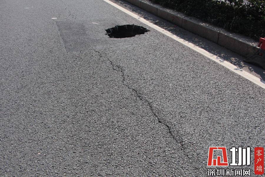 上午10點40分,記者在現(xiàn)場看到,該路面有一個直徑約一米、深約一米的坑口,旁邊還有一道長約20米的裂痕。工作人員正在使用雷達儀器對地面情況進行勘測,同時該路段及靠深南大道一條車道已暫時被封鎖,福田區(qū)交警大隊也在現(xiàn)場指揮交通。據(jù)悉,該位置較臨近的地鐵2、3路線的站點,一位深圳地鐵的工作人員告訴記者,目前該事故沒有對其線路運行造成影響,也非先前修挖地鐵所致。