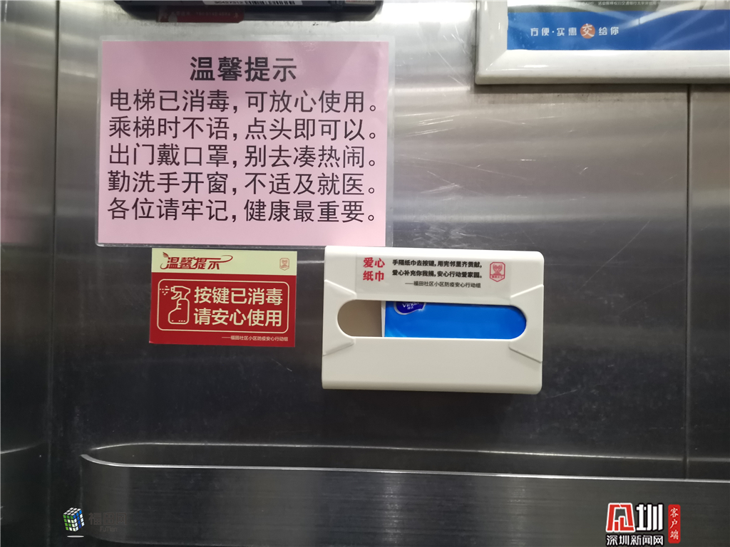 為做好小區(qū)防疫,電梯間消毒、電梯按鈕覆膜、電梯間設(shè)置公用紙巾已成為很多小區(qū)的標(biāo)配,隨之也產(chǎn)生了新的問題,比如電梯按鈕覆膜多按幾下就破了,特別是“1”和關(guān)門按鍵,小區(qū)物業(yè)剛用新的膜覆蓋上,沒一會(huì)兒的功夫就被戳破了,另外,按電梯按鍵有的小區(qū)設(shè)置了公用紙,紙巾用后亂扔等問題也影響小區(qū)衛(wèi)生。面對(duì)這樣的抱怨和難題,福田區(qū)社區(qū)小區(qū)防疫安心行動(dòng)組從細(xì)微處著手,為出現(xiàn)確診病例采取硬隔離的小區(qū)統(tǒng)一購(gòu)制了掛壁紙巾盒,并采購(gòu)了電梯按鈕專用膜覆蓋?!斑@種電梯按鍵保護(hù)膜太好了,韌性強(qiáng)、不易破,便于消毒,你們太細(xì)心了,非常感謝!”福田區(qū)蓮花街道彩田村物業(yè)公司負(fù)責(zé)人對(duì)安心行動(dòng)組贈(zèng)送的電梯按鍵透明保護(hù)膜贊不絕口。