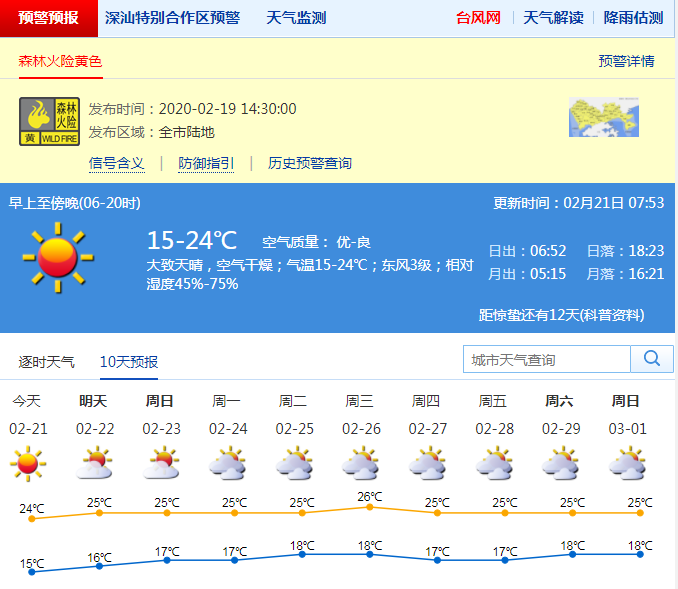 氣溫回升!深圳今日最高溫24℃ 森林火險(xiǎn)黃色預(yù)警生效中