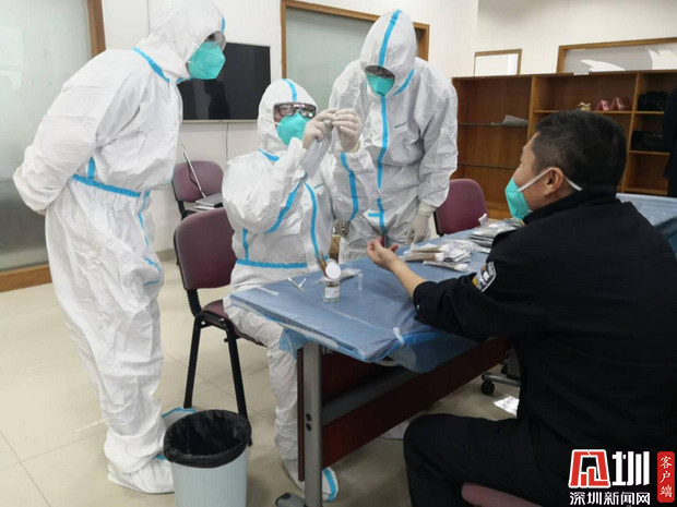 深圳強(qiáng)戒一所為封閉備勤的民警開展病毒抗體檢測(cè)。
