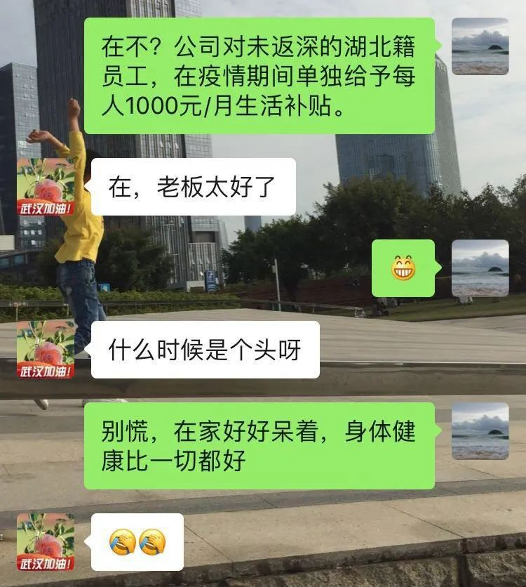 “工資已經(jīng)全額到賬,由于疫情影響,針對(duì)不能返程的湖北籍員工,每人額外發(fā)放1000元生活補(bǔ)貼?!?月17日,身在湖北公安的晏君收到公司通知后,懸著的心終于放了下來。晏君是深圳坤弘印務(wù)有限公司倉儲(chǔ)部記賬員,她坦言,公司發(fā)放的工資和生活補(bǔ)助是“雪中送炭”,過去近一個(gè)月心里確實(shí)很忐忑,既擔(dān)心沒工資發(fā),又害怕丟了工作,如今不用擔(dān)心經(jīng)濟(jì)來源了?!瓣P(guān)鍵時(shí)候,公司不僅沒有拋棄我們,還給我們諸多關(guān)愛。我發(fā)現(xiàn)我更愛公司、更愛我的工作了?!?/p>