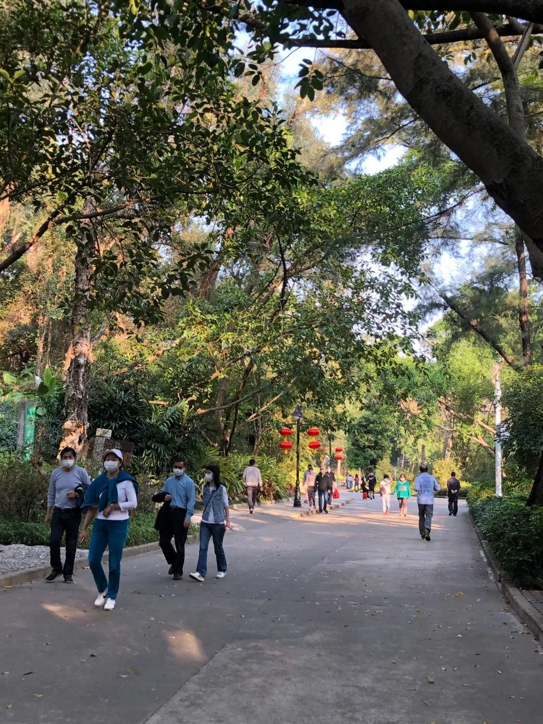 在光明區(qū)塘家公園,每隔一小段距離,就有零星幾個當?shù)氐娜罕?,在公園的池塘邊觀賞風景,散散心,均有佩戴口罩。