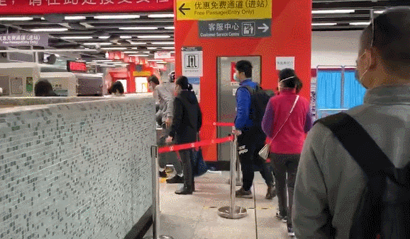 大家隔著安全距離,有序排隊進站