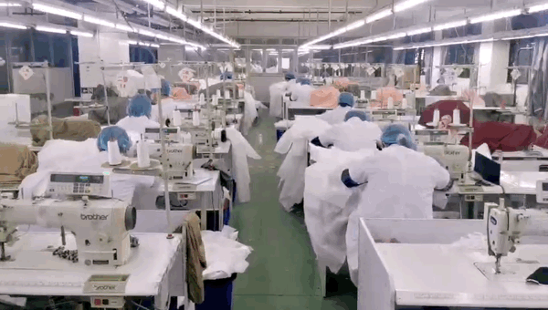 位于大浪時尚小鎮(zhèn)的影兒集團(tuán),加緊生產(chǎn)隔離服,支援疫情防控工作。