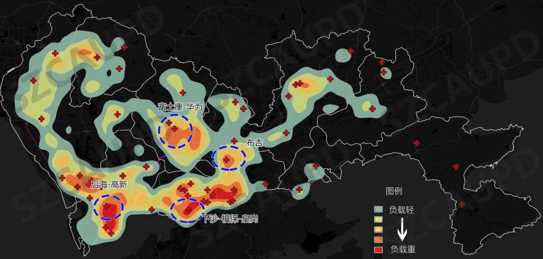 復(fù)工正加快步伐有序地進(jìn)行著,但是疫情防控也到了“最吃勁的關(guān)鍵節(jié)點(diǎn)”,更要穩(wěn)住。輸入性風(fēng)險增大,加上復(fù)工人員聚集帶來的風(fēng)險,考驗(yàn)著城市管理的能力與效率。此前,深圳的防控風(fēng)險主要在于“涉疫”小區(qū)。截至2月24日24時,深圳市累計(jì)報(bào)告確診病例417例,分布于250個小區(qū)(場所),主要集中在城市中心地區(qū)。從下面的數(shù)據(jù)分布圖來看,我們可以看到了特別是在深圳的東南部,數(shù)點(diǎn)相對密集,而這恰好又與我市科創(chuàng)企業(yè)的分布發(fā)生一定程度的重合。逐步復(fù)工之后,防控重點(diǎn)將轉(zhuǎn)向工作場所。一方面是工作人口的高密度集聚與交往,導(dǎo)致病毒傳染的風(fēng)險加大,深圳就業(yè)人員高度密集的地區(qū)將是高風(fēng)險區(qū),如車公廟、高新園、華強(qiáng)北等地區(qū);另一方面,涉疫小區(qū)及其周邊可能會出現(xiàn)的潛在感染者,將有可能隨著工作通勤進(jìn)一步傳播。基于百度慧眼通勤大數(shù)據(jù)分析涉疫小區(qū)居民的工作地點(diǎn)分布,未來可能涉疫的工作場所主要集中在福田-羅湖-南山中心一帶,并在局部地區(qū)形成集聚區(qū)。而龍華、寶安、龍崗也有局部相對高集聚的地區(qū)。這些都是深圳近期應(yīng)重點(diǎn)防疫的區(qū)域。▼ 深圳近期應(yīng)重點(diǎn)防疫的空間地圖