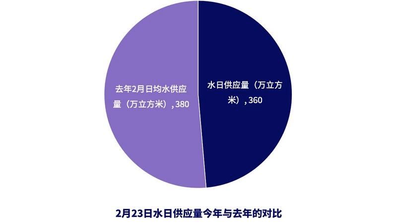 隨著人員回城、企業(yè)復(fù)工,各種能源供應(yīng)量也日益增加,逐漸接近去年同期。2月9日企業(yè)復(fù)工以來,水電供應(yīng)呈不斷上漲的趨勢,2月23日,日供應(yīng)電量達(dá)去年2月日均供應(yīng)量的82.4%,水日供應(yīng)量達(dá)到94.7%。