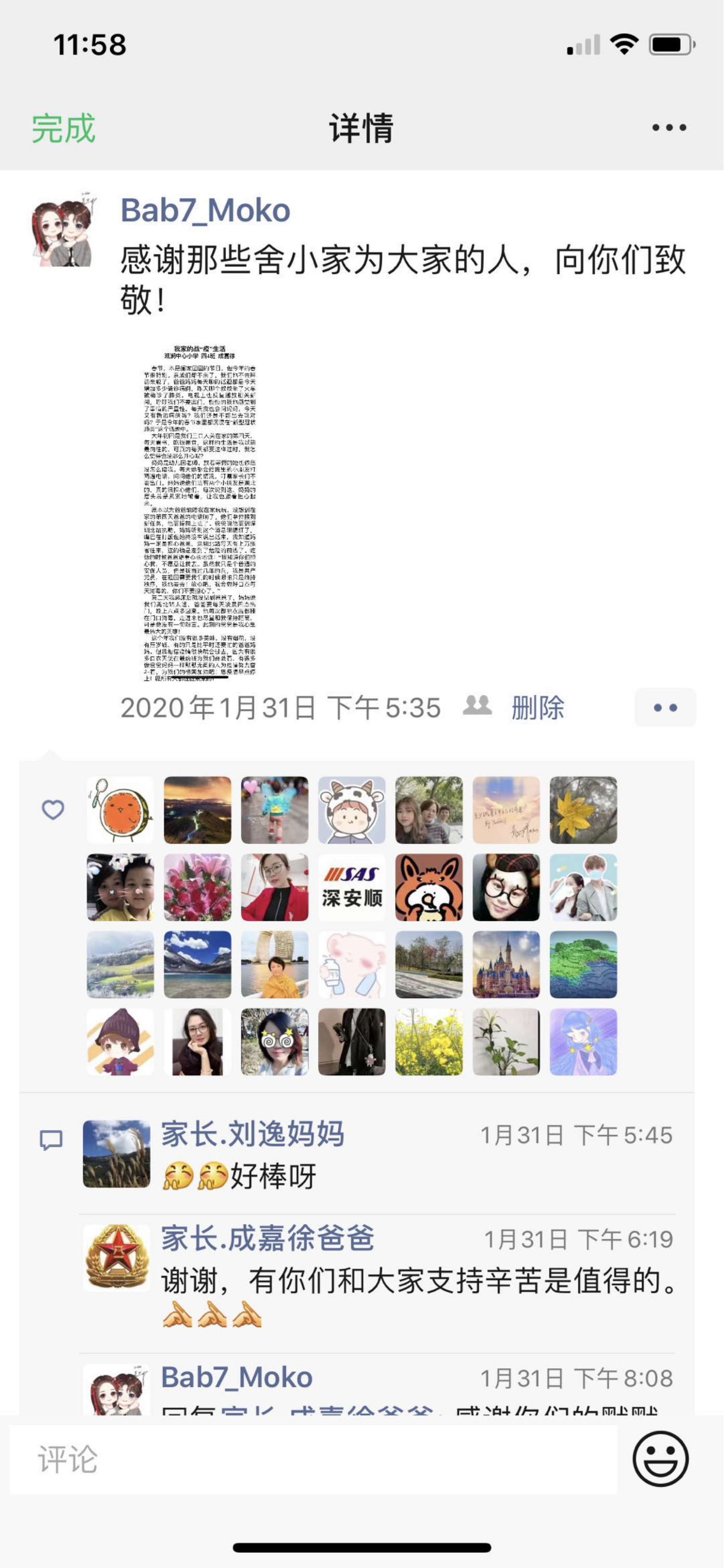 因為網(wǎng)課,班里的學生有了很多新體驗,比如嘗試自己做一頓飯,自制放大鏡,和父母一起運動鍛煉等?!坝形粚W生寫了一篇講述他爸爸在抗疫一線忙碌工作的作文,發(fā)給我看讓我指導,后來作文在《晶報》上登了出來,我又把作文發(fā)到班級群里分享,讓大家學習這位同學,學習他爸爸這種舍小家顧大家的行為,很多家長看到了都為他們點贊。”