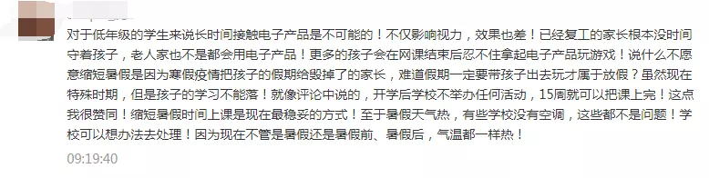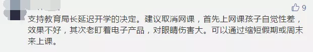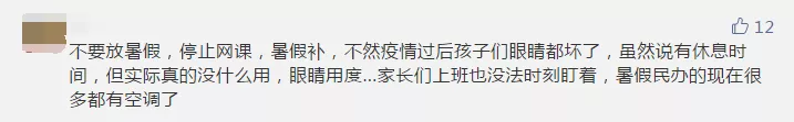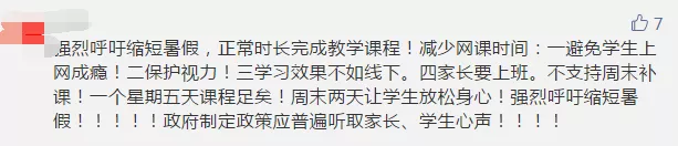 一些參與者留言建議減少或暫停網(wǎng)課時間,縮短周末或暑假時間進(jìn)行補(bǔ)課。