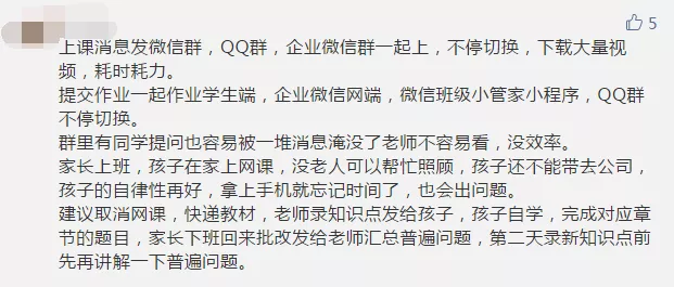在疫情期間,如何做好“停課不停學(xué)”,許多參與者也給出自己的建議。有家長建議將目前的上課形式轉(zhuǎn)變?yōu)椤罢n題式教育”,即由老師出主題,學(xué)生獨立思考完成。