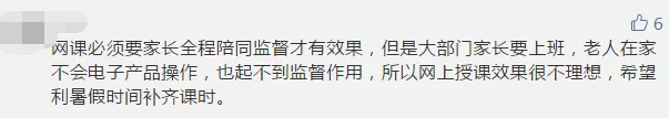 雖然網(wǎng)課兩端是老師和學(xué)生,但家長的參與也必不可少。部分參與者認為,如果沒有家長的有效監(jiān)管,網(wǎng)課很難保證教學(xué)質(zhì)量,而大部分家長已經(jīng)復(fù)工,無法時刻盯著孩子。有些家長晚上下班后還要監(jiān)督孩子上網(wǎng)課、做作業(yè),實在“費時、費力、費神”。讓孩子自己上網(wǎng)課,有些“連作業(yè)是什么都不清楚”。還有些孩子利用上網(wǎng)課的空檔玩游戲,甚至“從十七號開始到現(xiàn)在玩游戲超過1萬塊”。