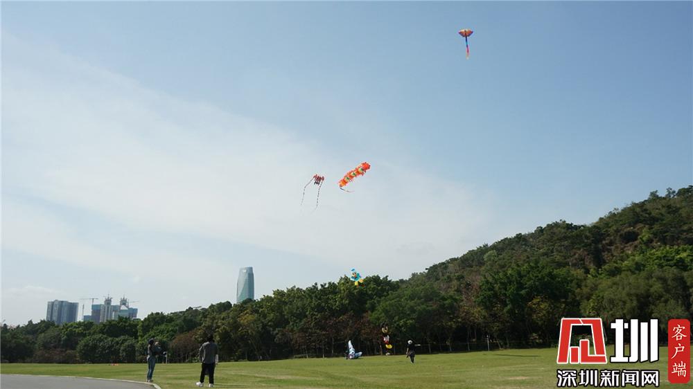 蓮花山公園風箏廣場上,不少市民在此放飛風箏。