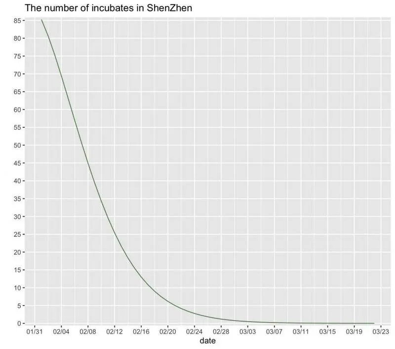 而通過模擬深圳新冠肺炎每日的潛伏者數(shù)量可以看出,2月份以來每日的潛伏者數(shù)量在持續(xù)下降,2月18日已降至個(gè)位數(shù),到3月初時(shí)潛伏者將基本清零。說明在一系列的防控措施下將病毒傳染的途徑嚴(yán)格控制,很好地防止了病毒的擴(kuò)散。