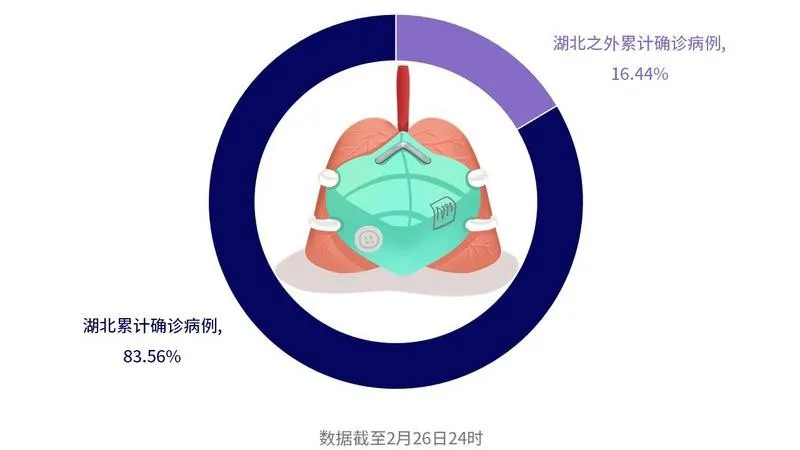 截至2月26日24時(shí),全國(guó)累計(jì)確診病例78497例,其中,湖北地區(qū)占比83.56%。