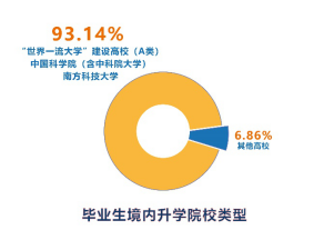 而境內(nèi)升學中,去往雙一流高校以及中國科學院(含中科院大學)、南科大的畢業(yè)生占了絕大部分。其中,到清華大學和北京大學升學的共計13人,7人攻讀碩士學位,6人攻讀博士學位。