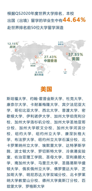 從本科畢業(yè)生升學情況來看,有超六成同學選擇了境外留學,其中四成為直博。在2019屆畢業(yè)生里,直博人數(shù)為144人,占全體畢業(yè)生近20%。