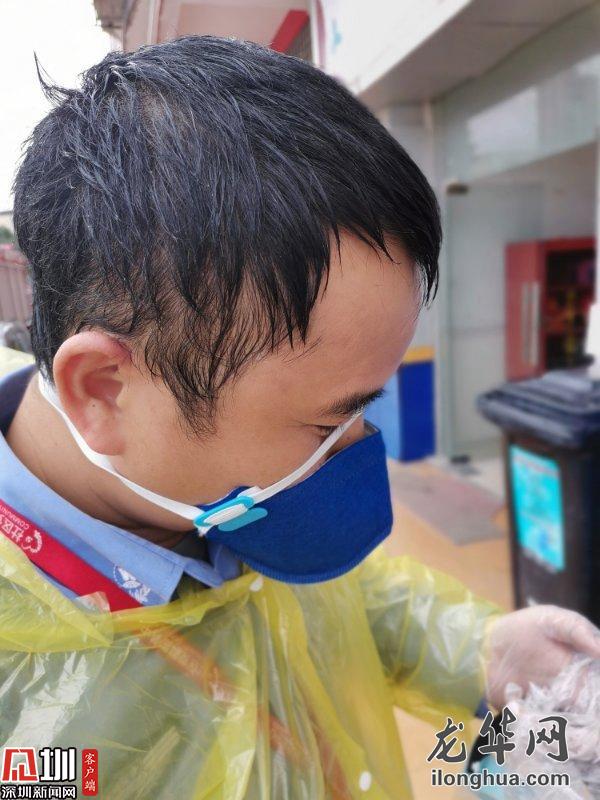 測溫、行李消毒,再一路噴灑著消毒液,護(hù)送返深人員回家。待走出樓道,他顧不上狼狽,終于如釋重負(fù)脫下防護(hù)服,身上穿了一天的制服,早數(shù)不清汗?jié)竦趲谆亓?,他說,就當(dāng)減肥了。