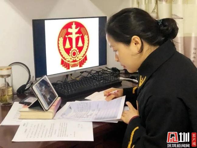 庭審當(dāng)天,審判長、人民陪審員、書記員、當(dāng)事人借助互聯(lián)網(wǎng)實現(xiàn)三線聯(lián)通,這也是深圳法院法官身在疫情嚴(yán)重地區(qū),異地遠(yuǎn)程視頻辦案的庭審。