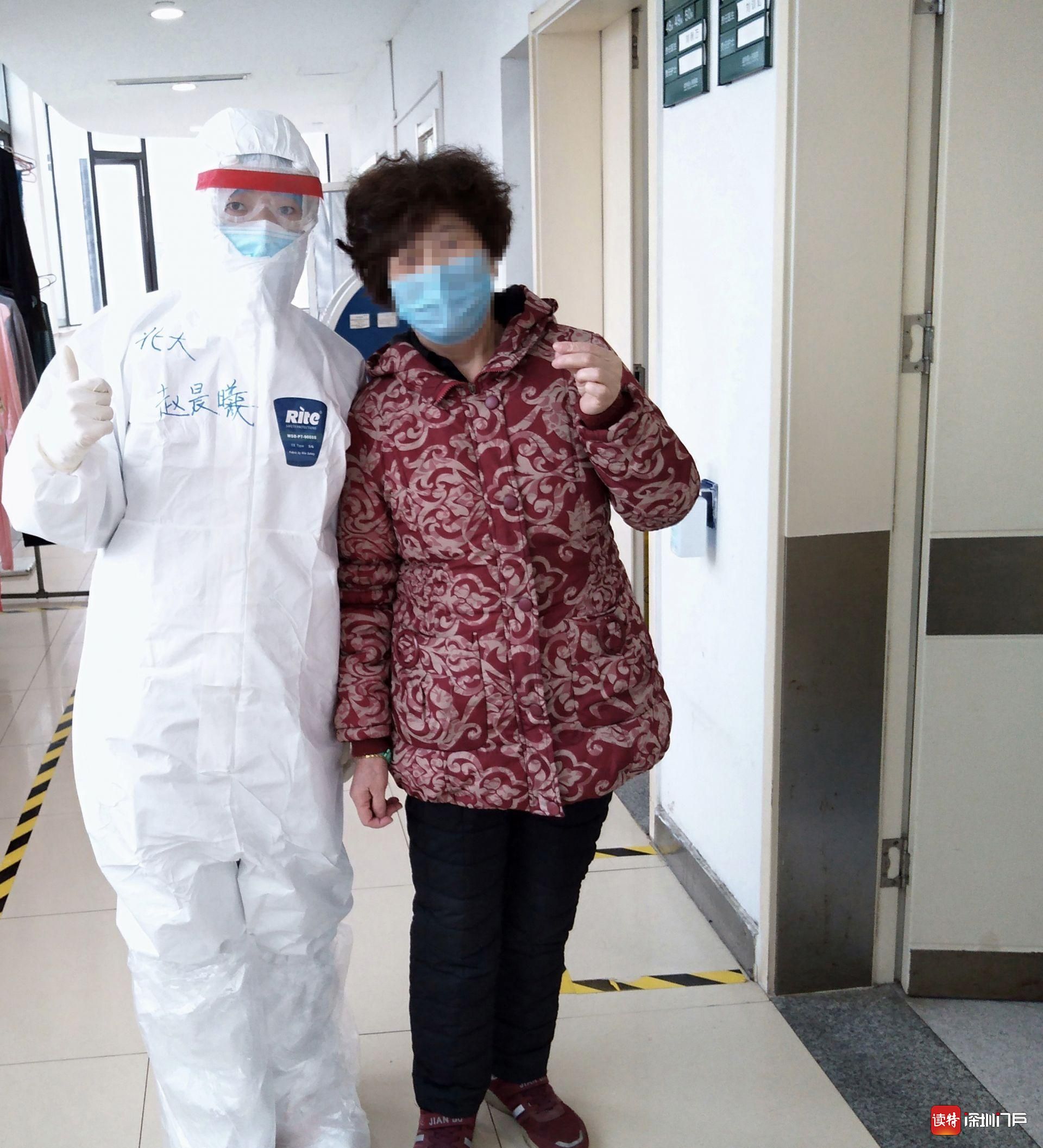 張阿姨和深圳醫(yī)療隊(duì)隊(duì)員趙晨曦在病區(qū)內(nèi)合影。深圳醫(yī)療隊(duì)供圖