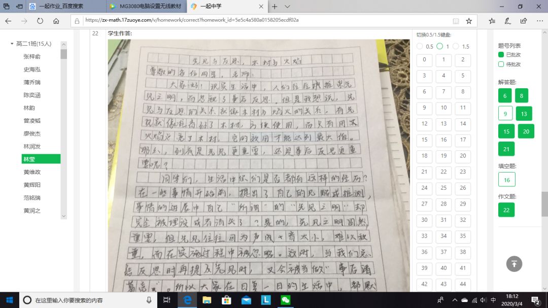 早在網(wǎng)課開(kāi)始第二周,針對(duì)老師們對(duì)網(wǎng)課效率不高的顧慮,高二年級(jí)就做了一次網(wǎng)上調(diào)查,絕大部分老師贊成進(jìn)行一次網(wǎng)上考試,以檢驗(yàn)網(wǎng)課的學(xué)習(xí)效果,以便調(diào)整教學(xué)。之后,學(xué)校開(kāi)始著手準(zhǔn)備網(wǎng)上考試,向技術(shù)平臺(tái)提交學(xué)生和老師信息,下發(fā)《一起作業(yè)學(xué)生注冊(cè)登錄指引》和《一起作業(yè)教師作業(yè)批改操作指南》。年級(jí)各備課組開(kāi)始命題,為了檢驗(yàn)二實(shí)“線(xiàn)上學(xué)堂”的實(shí)效,學(xué)校要求命題的范圍以直播課內(nèi)容為主,兼顧寒假作業(yè)??记耙恢埽鱾湔n組都上交平臺(tái)進(jìn)行試卷制作。2月26日,網(wǎng)上作業(yè)批改功能正式上線(xiàn),高二年級(jí)要求備課組在考試之前至少利用線(xiàn)上平臺(tái)布置批改一次網(wǎng)上作業(yè),積累經(jīng)驗(yàn),提醒平臺(tái)改進(jìn)不完善的問(wèn)題,及時(shí)更新,同時(shí)讓學(xué)生和老師熟悉操作技巧。備課組在考前都向?qū)W生發(fā)布了考試注意事項(xiàng),要求學(xué)生豎拍照片,注意字跡大小和拍照清晰度,單題上傳,試卷在閱讀頁(yè)面和題目設(shè)置也做了優(yōu)化,大大方便了學(xué)生答題,有效減輕老師改卷負(fù)擔(dān),提高了閱卷的效率。