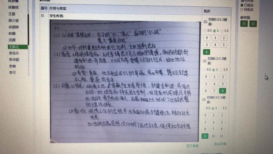 “考試期間,家長(zhǎng)們積極配合監(jiān)考,上傳照片;各班班主任全程陪考,隨時(shí)反饋解決班級(jí)學(xué)生出現(xiàn)的考試問(wèn)題;各備課組老師網(wǎng)上巡考,提醒學(xué)生答題注意事項(xiàng),在線(xiàn)隨時(shí)回答和處理學(xué)生疑問(wèn);平臺(tái)的技術(shù)支持人員全天候?qū)B氃诰€(xiàn)服務(wù),全力解答考試中的技術(shù)問(wèn)題?!倍?shí)高二年級(jí)主任宋德勝告訴記者,兩天的“云考試”,整體非常順利,網(wǎng)絡(luò)平穩(wěn),全年級(jí)395人參加考試,無(wú)一缺考,全部上傳了試卷。他表示,高二年級(jí)作為廣東省首屆新高考改革年級(jí),也成為了這次“云考試”的試點(diǎn)年級(jí),每位學(xué)生的考試科目除語(yǔ)數(shù)外三門(mén)必考,其余根據(jù)自己選科情況六選三,每個(gè)學(xué)生考六科。目前,現(xiàn)在各備課組已經(jīng)投入緊張的閱卷中,確保周五前完成閱卷任務(wù)。