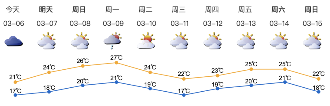 我市陰天間多云;氣溫17-21℃;偏東風3-4級,沿海、高地和海區(qū)陣風6級左右;相對濕度65%-95%。