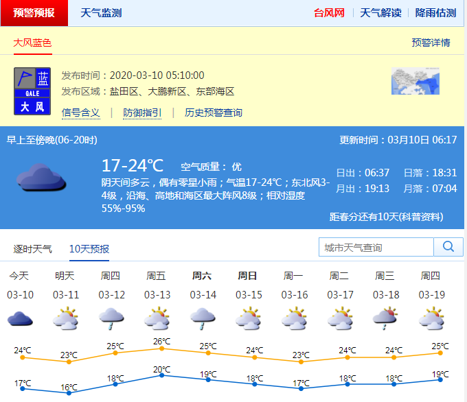 盡管冬天已經(jīng)過(guò)去,但是當(dāng)下的深圳乍暖還寒,氣溫變化較大,需要依據(jù)氣溫變化增減衣物,以防感冒。受新一股冷空氣影響,10日早晨有陣雨,伴零散雷暴,北風(fēng)加大,沿海、海區(qū)和高地有7級(jí)左右陣風(fēng)。10日白天降雨結(jié)束,可見(jiàn)陽(yáng)光,氣溫略降3-4℃,氣溫18-23℃。11日氣溫下降至16℃左右,天氣轉(zhuǎn)涼。12-13日氣溫明顯回升。 (記者董思)