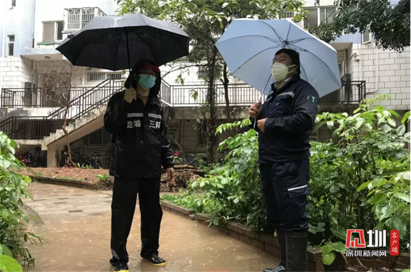 為打贏疫情阻擊戰(zhàn),愉園社區(qū)第一時(shí)間聯(lián)合愉園社康中心、新城派出所組建“三位一體”疫情聯(lián)防聯(lián)控工作組。2月13日,暴雨如注,陳科峰一大早剛剛帶著社區(qū)“三位一體”防控小組對(duì)一戶居家隔離人員完成核酸檢測(cè)。突然又想到和興花園小區(qū)老舊化糞池承載能力有限,今天下暴雨了更容易導(dǎo)致糞水溢出的危險(xiǎn),也不利于疫情防控。于是他馬上冒著大雨趕到現(xiàn)場(chǎng),和物業(yè)人員進(jìn)行溝通?!艾F(xiàn)在一下雨又能聞到刺鼻味道,必須找來(lái)抽水泵及時(shí)抽走!”站在一片積水中,陳科峰要求物業(yè)人員一定要做好接下來(lái)幾天暴雨來(lái)臨的準(zhǔn)備。他再三強(qiáng)調(diào),疫情之下,不能對(duì)居民生活造成不便。