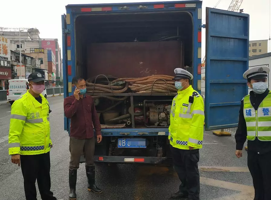 3月9日上午,深圳交警在坪山深汕路六合城路段對(duì)過往貨車進(jìn)行綠碼申報(bào)宣傳,一輛粵B號(hào)牌輕型廂式貨車引起現(xiàn)場(chǎng)民警注意,執(zhí)勤民警第一時(shí)間上前將該車攔至一旁進(jìn)行調(diào)查。
