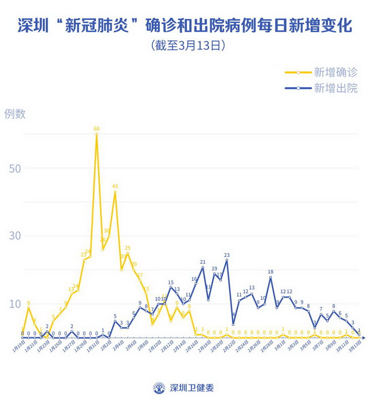 截至3月13日24時,深圳累計報告“新冠肺炎”確診病例420例。3月13日當天全市無新增確診病例,當天出院病例1例。