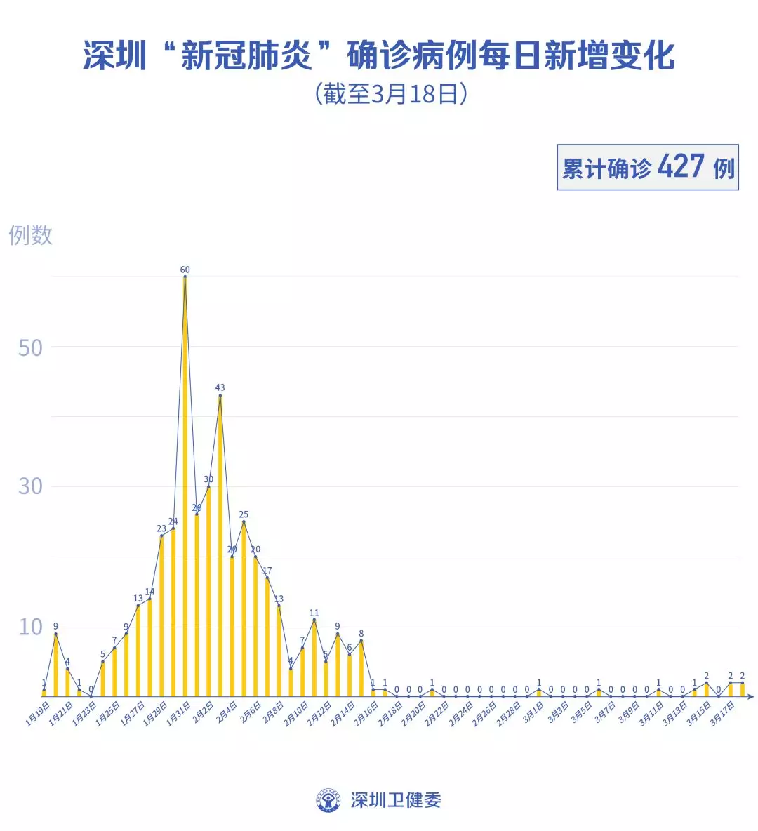 截至3月18日24時,深圳累計報告“新冠肺炎”病例427例。3月18日當(dāng)天新增2例,出院4例。
