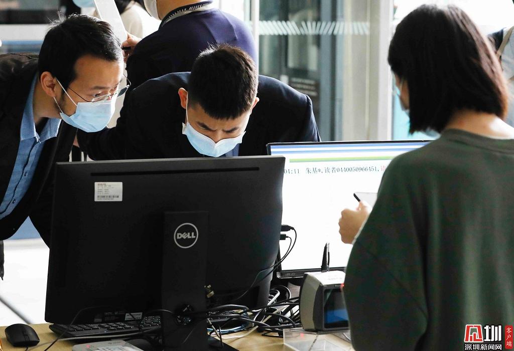 深圳圖書館入口處,工作人員正在驗證入場者的讀者證。