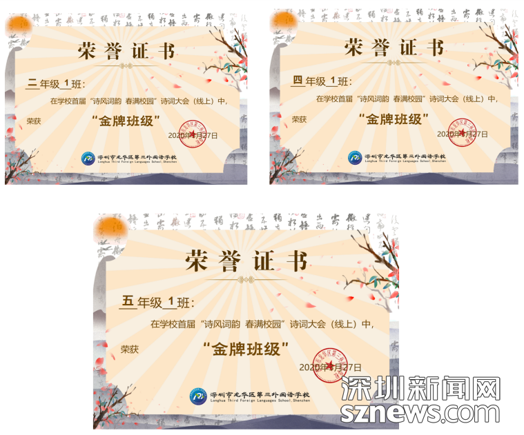 龍華區(qū)第三外國語學(xué)校舉行首屆“線上詩詞大會”