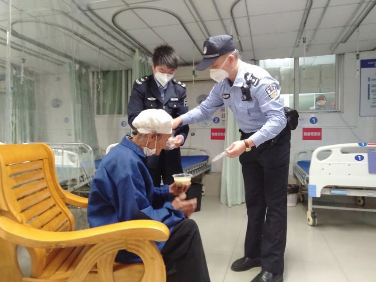 3月30日凌晨1時許,在醫(yī)務(wù)人員及民警的悉心照料下,老人漸漸蘇醒過來。石圍社區(qū)警長常軍給老人帶來了口罩和熱粥,一邊照顧老人喝粥,一邊輕聲地詢間老人的姓名、住址和親人信息等。但老人語言含糊不清、答非所問,說不清自己姓甚名誰,從哪里來、要到那里去,也無任何通訊工具。無奈,常警長只好安慰老人好好休息,并安排警力協(xié)同醫(yī)院值守警力對老人進行輪流照看,防止其再次走失發(fā)生意外。