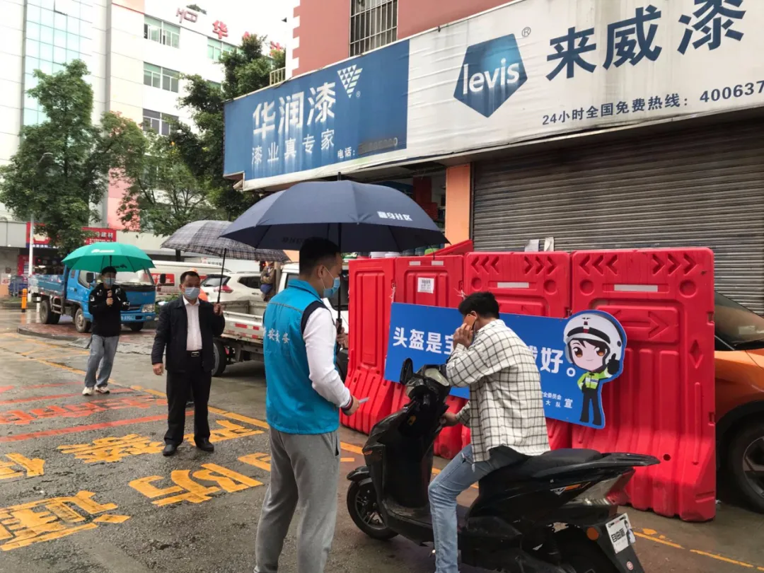 嚴查不戴頭盔違法,曝光所在社區(qū)。深圳交警聯(lián)合各轄區(qū)街道交安辦在社區(qū)內(nèi)開展頭盔佩戴抽查整治行動,提高電動自行車駕乘人員的交通安全意識。對頭盔佩戴率較低的社區(qū),進行通報曝光。