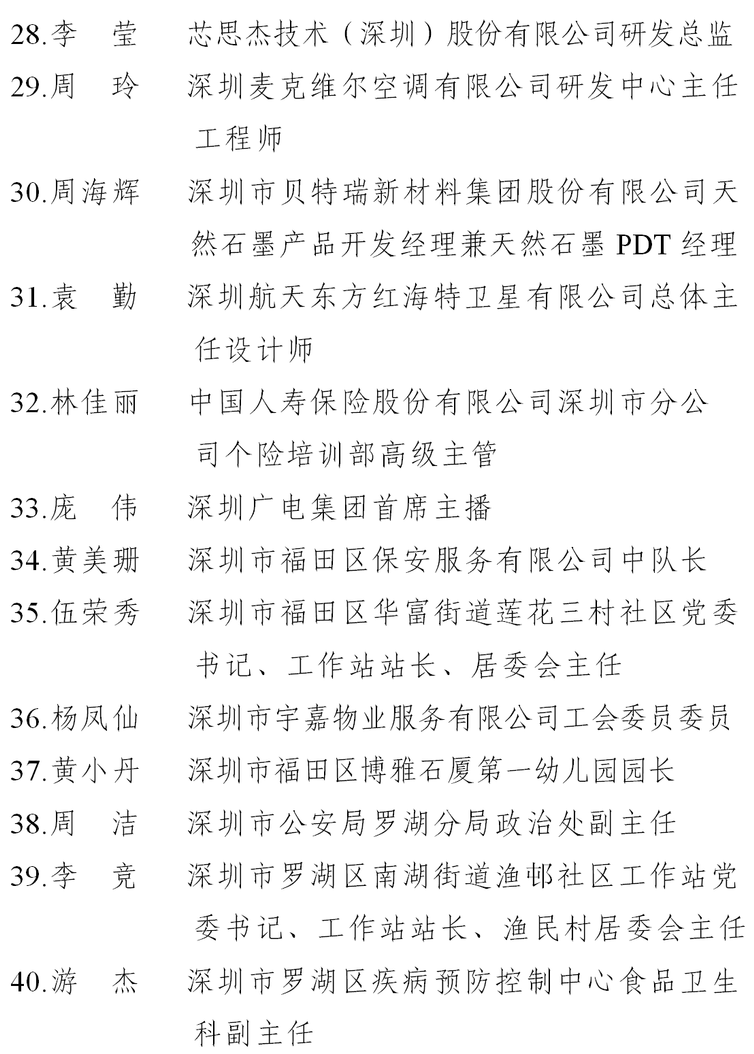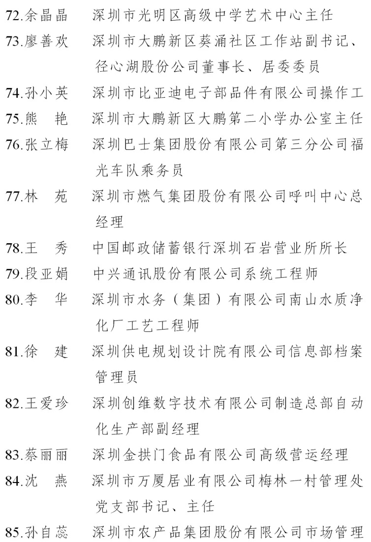 一、深圳市五一巾幗標(biāo)兵崗名單
