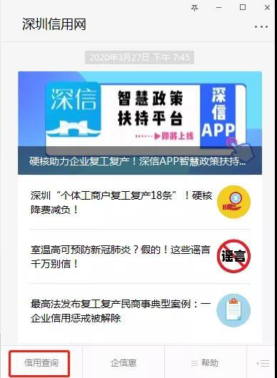 ▲深圳信用微信公眾號(hào)也可查詢(xún)。
