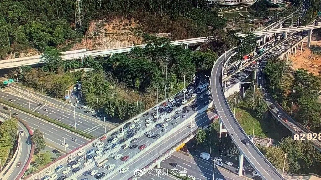 ▲深圳交警發(fā)布多個(gè)路段的早高峰情況,可見車流量十分之大