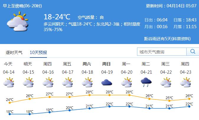 見圳客戶端·深圳新聞網(wǎng)2020年4月14日訊 據(jù)深圳市氣象臺預測,14日我市多云間陰天;氣溫18-24℃;東北風2-3級;相對濕度35%-75%,全市森林火險黃色預警信號生效中。今天比較適合早晚清涼中午稍熱的夾心搭配,出門須做好防曬。