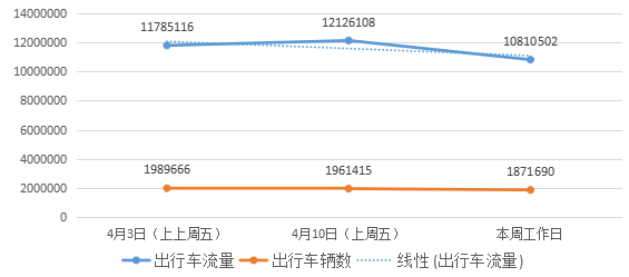 根據(jù)大數(shù)據(jù)統(tǒng)計(jì)分析,4月以來,我市日均出行車輛已達(dá)239.05萬輛,達(dá)常態(tài)出行車輛的93.07%;其中工作日日均出行車輛達(dá)254.10萬輛,達(dá)常態(tài)出行車輛的98.93%。深圳交警通過對(duì)比2020年4月10日(上周五)與4月6日至4月9日(周一至四)的工作日車流量平均數(shù),發(fā)現(xiàn)近期深圳高峰期擁堵指數(shù)有以下特征:早晚高峰擁堵指數(shù)上升(峰值高且持續(xù)時(shí)間長(zhǎng))、平峰基本持平。其中,早峰擁堵指數(shù)上升11.26%,晚高峰擁堵指數(shù)上升24%。這說明了周五晚高峰出行的車輛要比平日高峰期出行車輛要多。