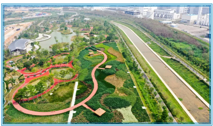 三溪河禾塘山水段位于大鵬新區(qū)金嶺路,于2019年完成整治。禾塘山水景觀節(jié)點(diǎn)水質(zhì)清澈(達(dá)到地表水II類以上標(biāo)準(zhǔn)),環(huán)境宜人,設(shè)置了跌水、疏林草地、花境坡等景觀和慢行步道、親水棧道、景觀亭、垂釣臺(tái)等一系列設(shè)施,成為深受市民喜愛的綜合性濕地公園。