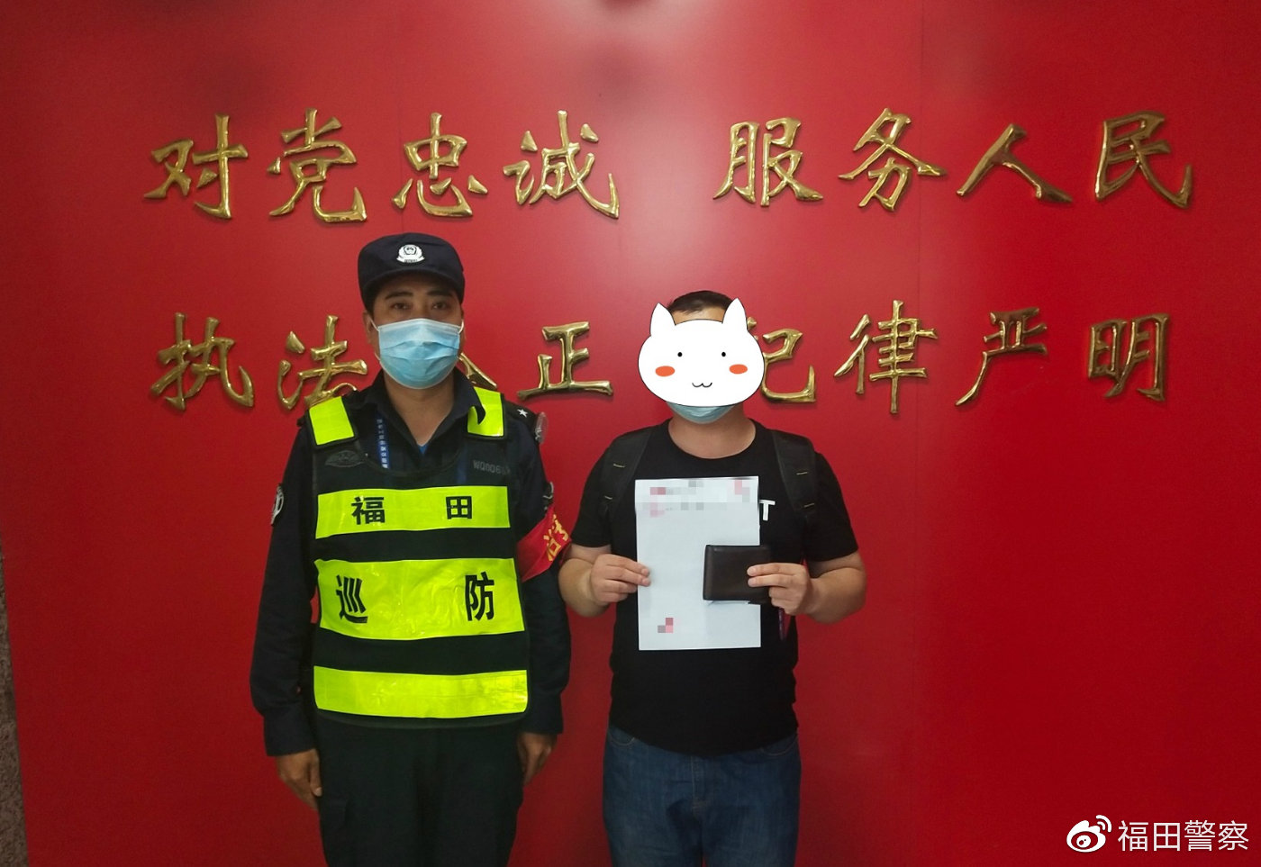 4月5日上午,深圳市公安局福田分局南園派出所隊員段忠孝在回所交接班路途中,在地上發(fā)現(xiàn)一個遺落的錢包,打開仔細(xì)一看,內(nèi)有銀行卡、社??ā⑸矸葑C、現(xiàn)金410元人民幣等物品,還有一張外出務(wù)工人員健康證明。