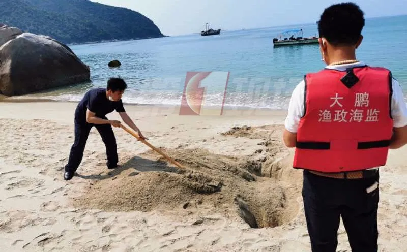 為避免對(duì)附近海域及沙灘造成影響,執(zhí)法人員在咨詢相關(guān)專家后將該海豚尸體現(xiàn)場(chǎng)進(jìn)行無(wú)害化掩埋。