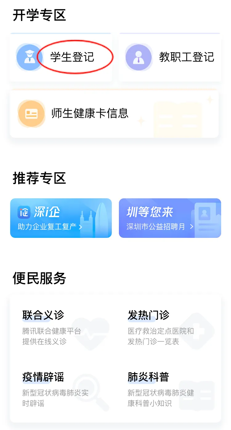 在開學(xué)專區(qū),點擊“學(xué)生登記”進(jìn)行自主申報和實名認(rèn)證。