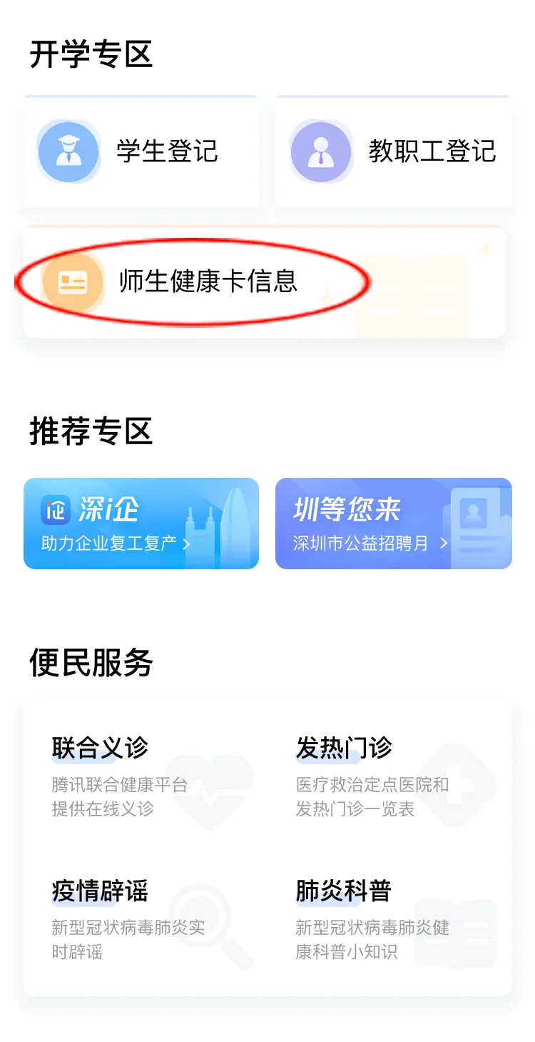 在開學(xué)專區(qū),點擊“教職工登記”進(jìn)行自主申報和實名認(rèn)證。