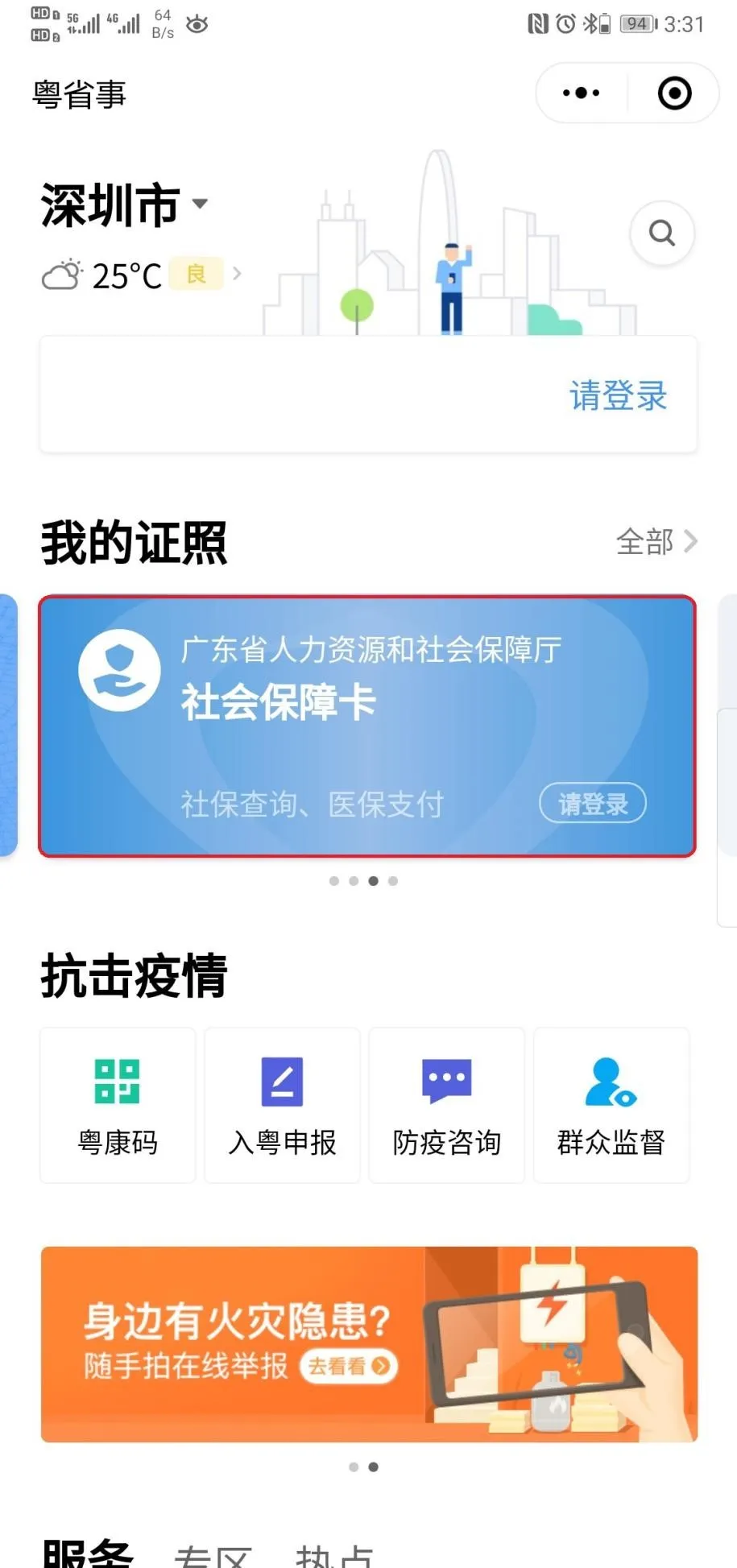 1、通過(guò)“粵省事”微信小程序查詢,微信搜索“粵省事”小程序,登錄后,在“我的證照”添加“社會(huì)保障卡”;