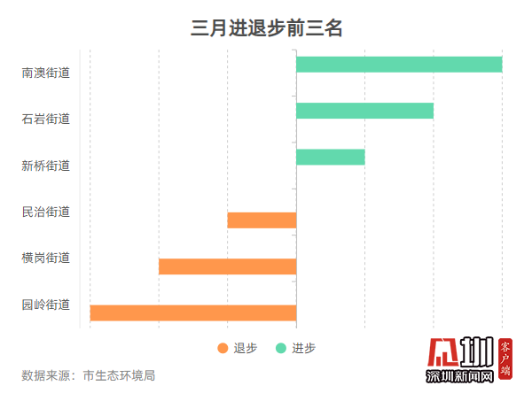 2020年一季度各街道數(shù)據(jù)顯示,桃源街道、黃貝街道和南湖街道空氣質(zhì)量排名始終保持在前十位,而馬田街道、新安街道、觀瀾街道、福城街道、筍崗街道、沙河街道、華強北街道和沙井街道空氣質(zhì)量排名連續(xù)三次墊底。