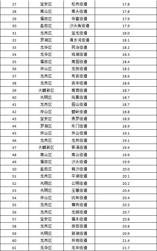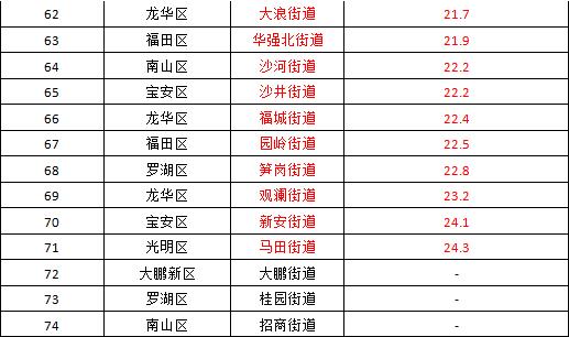 各街道及各區(qū)具體排名見下表。