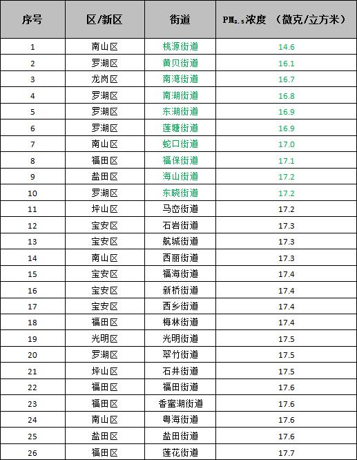 注:大鵬、桂園及招商等街道由于儀器故障及斷電等原因,有效數(shù)據(jù)不足。